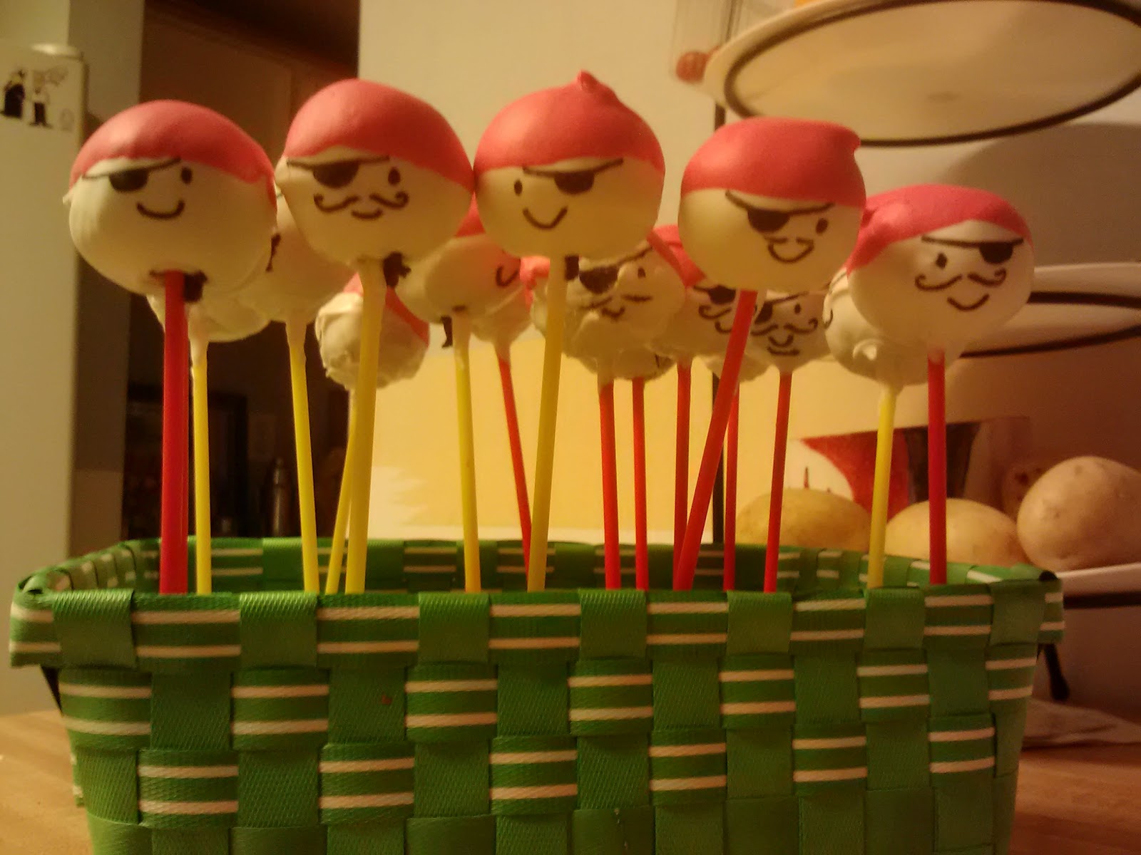 If you're interested in making them to look like pirates you just need to melt another color of candy melts and redip them only halfway though. They make pens that you can write on candy and fondant with so I just used those to draw their faces.